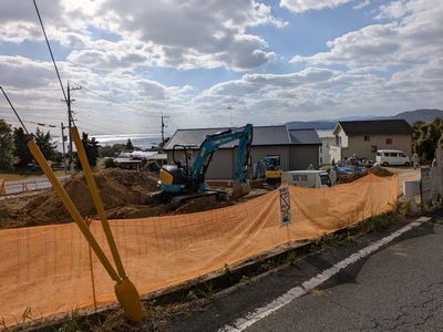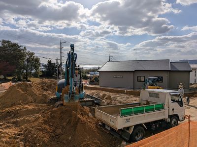 バックホウで穴を掘り、その中で作業するのは大変だなと思います。