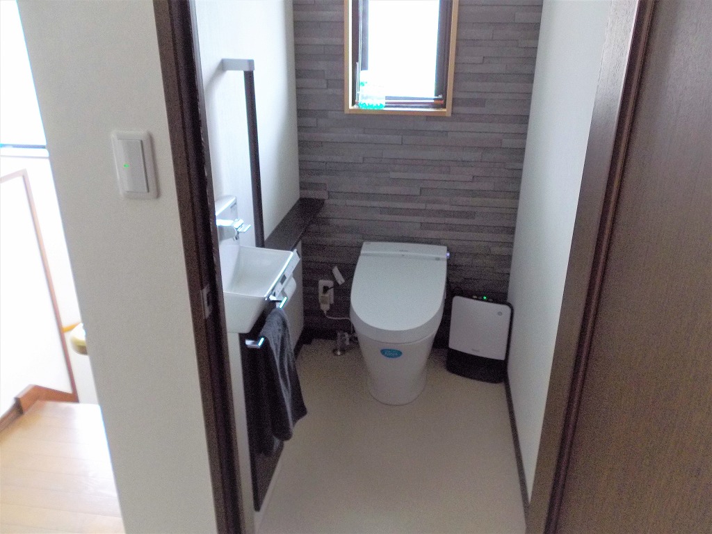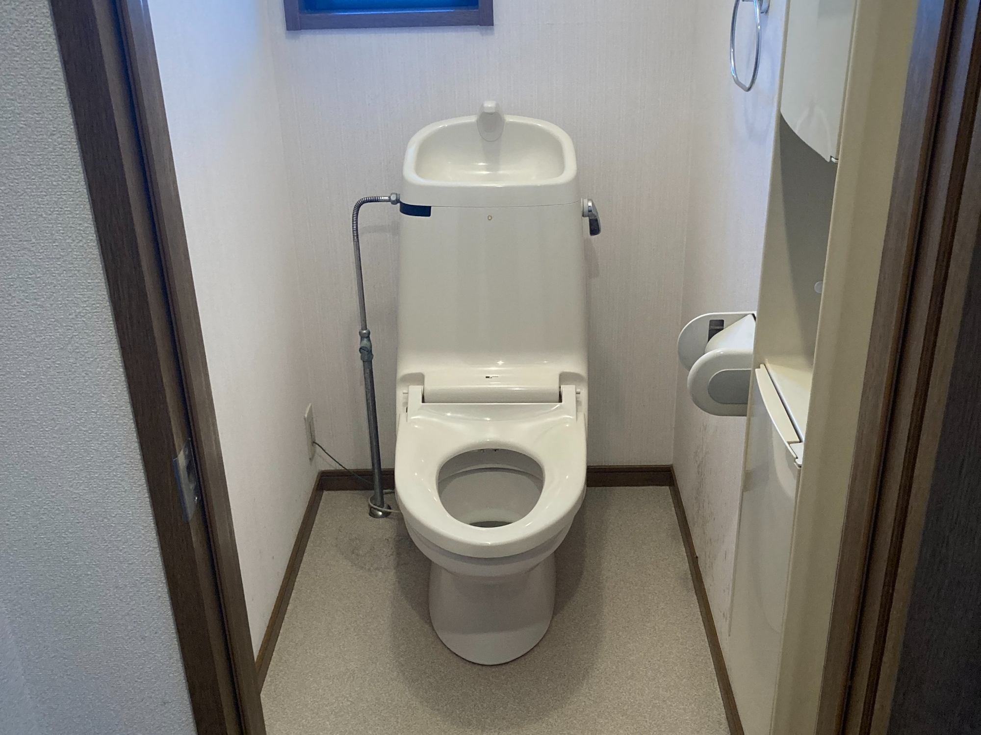 お母さまが1階和室へのお引越しを機に押入れをトイレに替えました!もともとは押入れなので給水、排水、電気、換気設備を作って、通常のトイレと同等のものができました!