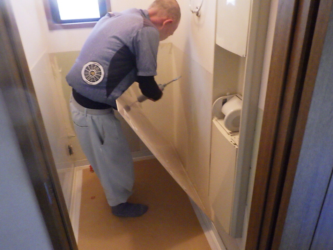 廊下とトイレルームとの間に高い段差があり危なかったので段差をなくしました。トイレルームのほうが少し低い位置だったので、少し上げて廊下と同じ位置にしました。